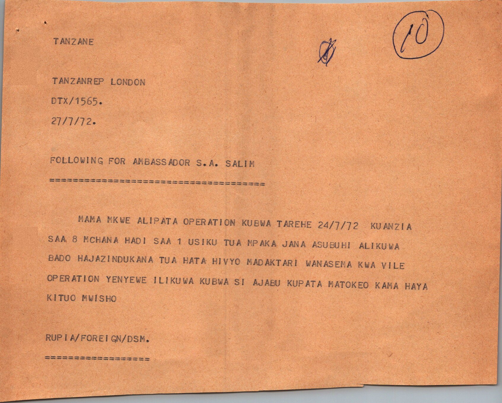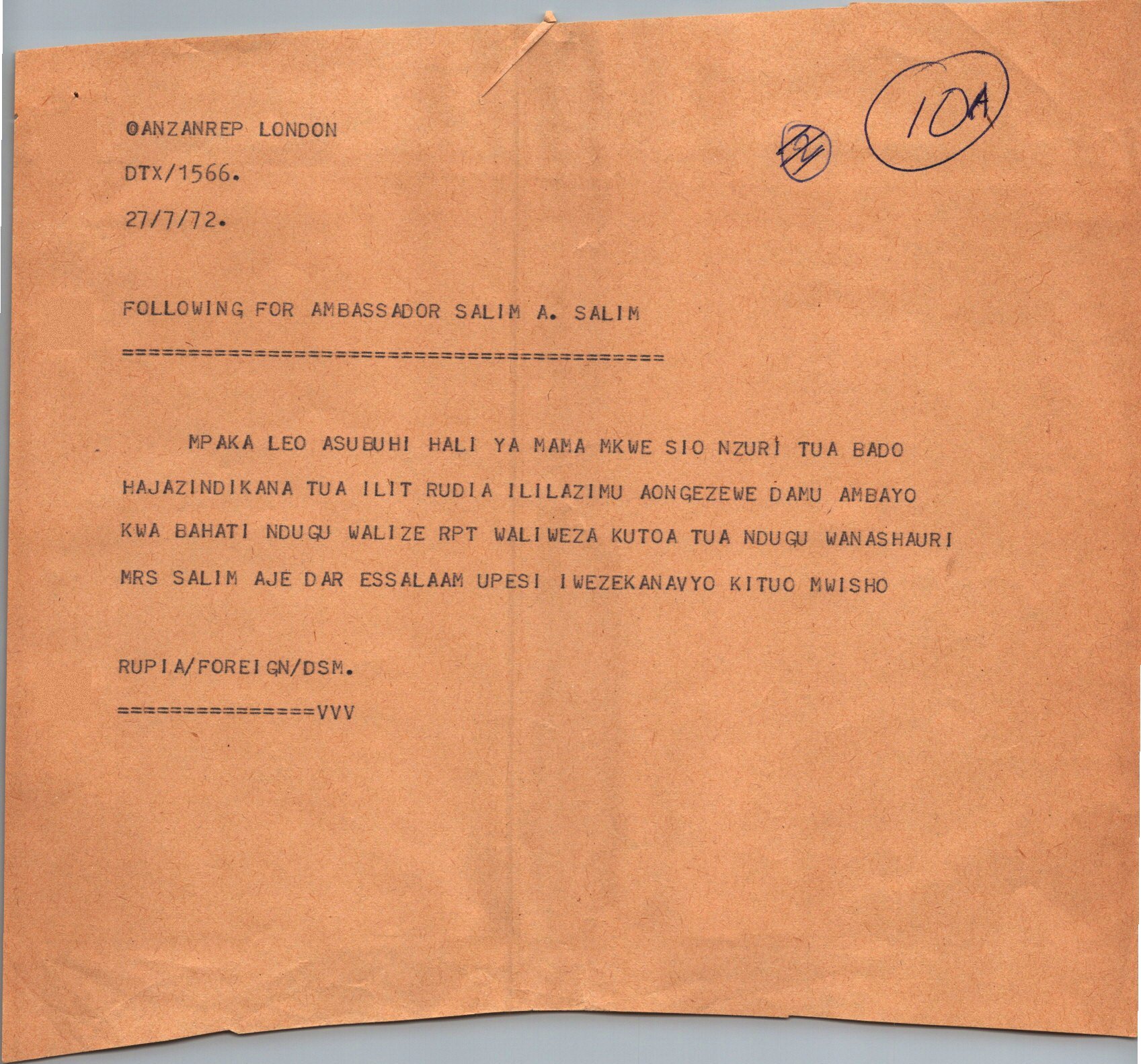 Correspondence from Ambassador Paul Rupia July 27 1972